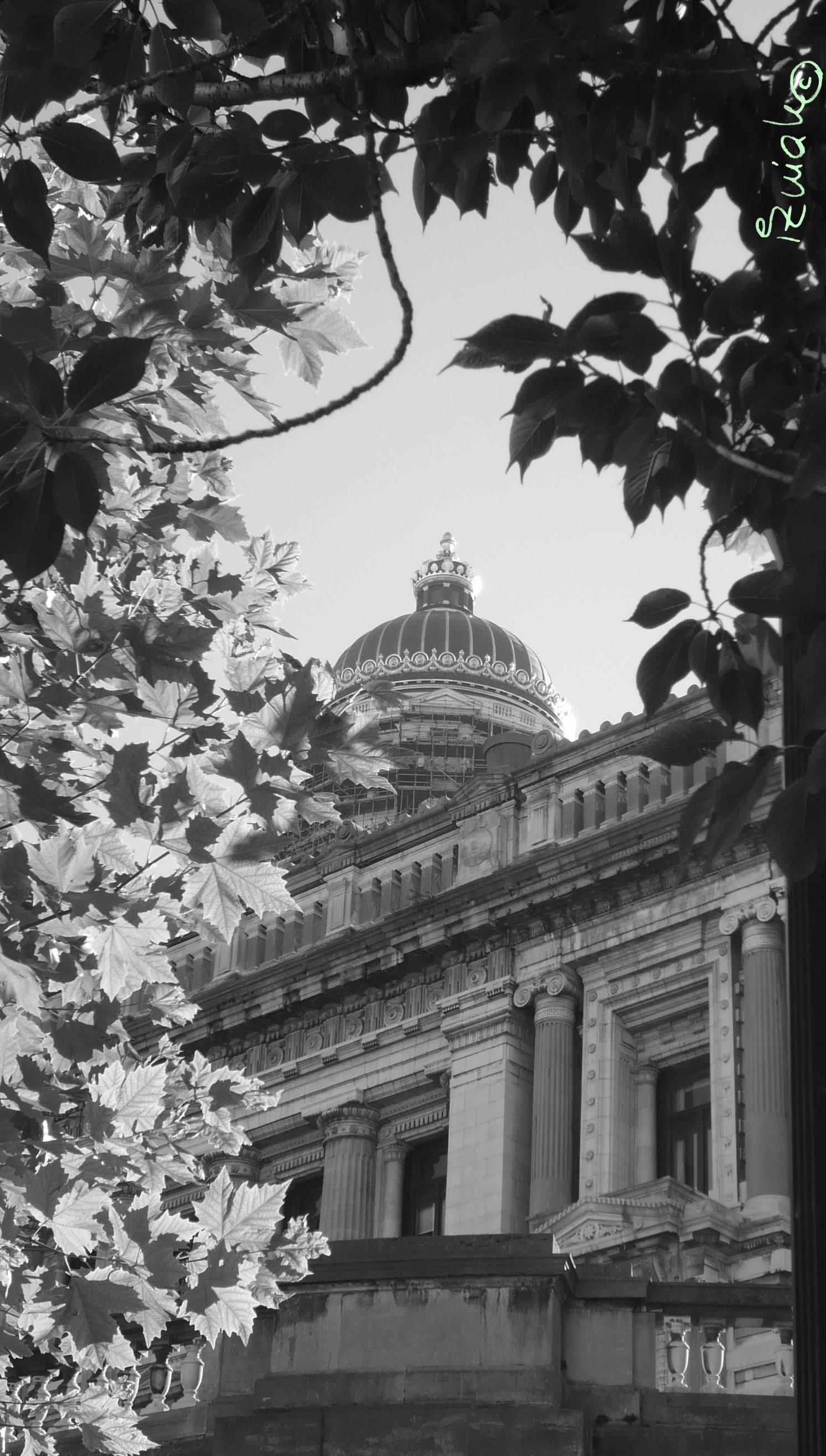Justitia, die Gerechtigkeit. Ja, es könnte ihr zu Hause sein. Hier. Der Palast. Justitia scheint in diesem monumentalen Bau nicht nur anwesend sondern auch unheimlich groß zu sein. Es fühlt sich hier sicher an, unter ihrem fiktiven Mantel. Ein Paradoxon?