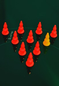 Das Halma-Prinzip im Leben über Bord werfen. Als Querdenker nicht mehr gegen den Strom schwimmen sondern sich auf das Trittbrett setzen.